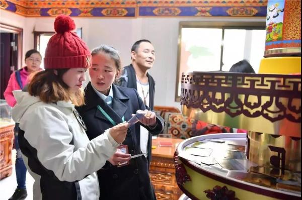 扎什倫布寺,來自香港的游客在展示中國郵政設(shè)計(jì)制作的景區(qū)門票。西藏郵政以深度融合西藏旅游文化、西藏民俗文化和郵政文化為核心,以郵政先進(jìn)的網(wǎng)絡(luò)、技術(shù)為支撐,服務(wù)景區(qū),服務(wù)游客,融入西藏旅游發(fā)展熱潮,助推西藏旅游經(jīng)濟(jì)的發(fā)展。