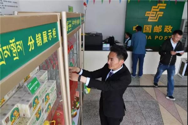 西藏自治區(qū)納木錯(cuò)自然保護(hù)區(qū)郵局,旦增洛珠(左)正在給游客介紹旅游產(chǎn)品。自農(nóng)村電商工作開展以來,西藏郵政已在全區(qū)各地(市)多個(gè)郵政營(yíng)業(yè)網(wǎng)點(diǎn)、便民服務(wù)站、小商超店、旅游景點(diǎn)等地建立“郵掌柜”、郵樂購、郵樂網(wǎng)、天上西藏E郵等網(wǎng)上購物和銷售系統(tǒng)。
