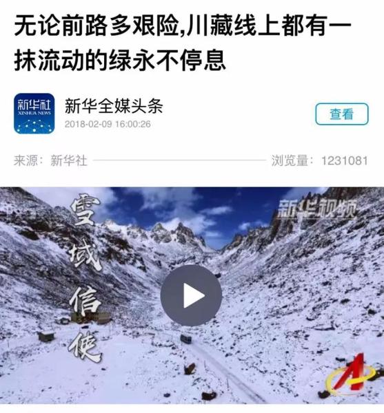 64年來,縱使川藏線上再多艱險,郵車也沒有一天斷檔,沒有出過一次大的交通事故。在大伙心目中,川藏線上那抹流動的綠,就是保障安全的“航標”。