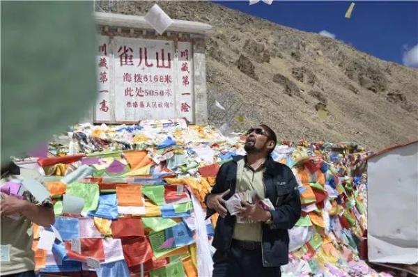 其美多吉在雀兒山埡口拋撒龍達