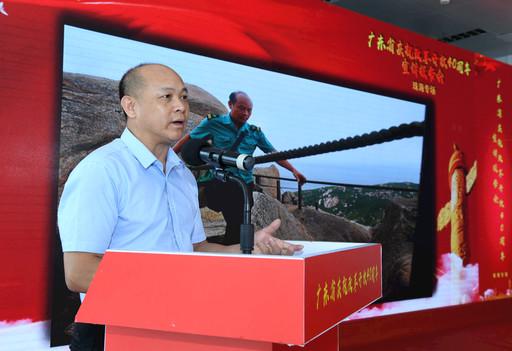 謝堅在廣東省慶祝改革開放40周年宣講報告會珠海專場上發(fā)言,他身后的大屏幕播放的是他30年來堅守海島的感人瞬間