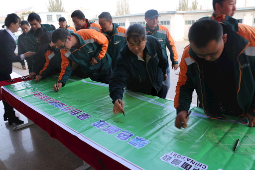 10月19日,內(nèi)蒙古自治區(qū)阿拉善盟郵政分公司黨委、工會(huì)和團(tuán)委聯(lián)合開(kāi)展了“綠色郵政建設(shè)行動(dòng)”暨“安全文明出行”倡議活動(dòng),共計(jì)100余人參加此次活動(dòng)。在現(xiàn)場(chǎng),阿拉善盟分公司宣讀了《綠色郵政 綠色發(fā)展 郵我先行倡議書(shū)》《阿拉善盟郵政分公司車輛綠色安全文明出行承諾書(shū)》,還組織了“綠色郵政建設(shè)和安全文明出行”簽字儀式和廢舊包裝箱回收活動(dòng)。阿拉善盟分公司通過(guò)對(duì)外推廣+對(duì)內(nèi)踐行的方式,積極開(kāi)展綠色包裝、綠色宣傳、綠色運(yùn)行、綠色經(jīng)營(yíng)等活動(dòng),讓綠色發(fā)展理念深植企業(yè),力爭(zhēng)通過(guò)3年時(shí)間讓阿拉善盟分公司形成人人爭(zhēng)做“綠色運(yùn)營(yíng)踐行者,綠色生活推動(dòng)者,綠色生態(tài)守護(hù)者,綠色品牌塑造者”的良好風(fēng)尚。 □巴根 攝影報(bào)道