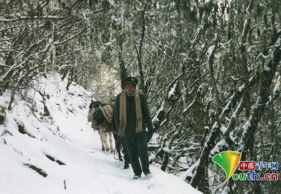 王順友負(fù)責(zé)的是從木里縣城到白碉鄉(xiāng)、三桷椏鄉(xiāng)、倮波鄉(xiāng)、卡拉鄉(xiāng)的郵路。翻越十幾座海拔從1000米到5000米不等的高山,從氣溫零下十幾度的察爾瓦山到四十多度的雅礱江河谷,從野獸出沒(méi)的原始森林到隨處可見(jiàn)的險(xiǎn)峻溝壑,從“一身雪”到“一身汗”……這樣的行程,他每個(gè)月要往返兩次,每次14到15天,一年的路程相當(dāng)于走兩萬(wàn)五千里長(zhǎng)征。