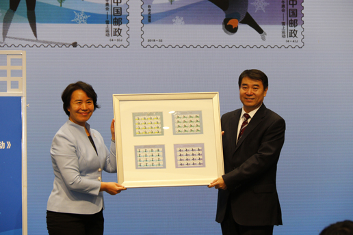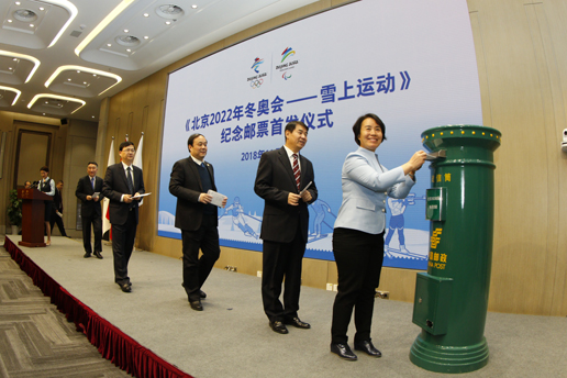 2018年11月16日,北京2022年冬奧會和冬殘奧會組委會(以下簡稱北京冬奧組委)與中國郵政集團公司聯(lián)合舉辦了“《北京2022年冬奧會——雪上運動》紀念郵票首發(fā)儀式”,北京冬奧組委秘書長韓子榮和中國郵政集團公司黨組副書記李丕征共同為紀念郵票揭幕。