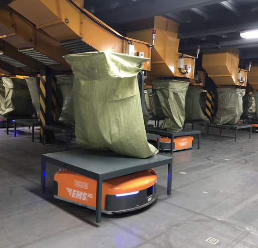 “雙11”期間,在郵政速遞物流華中(武漢)陸路郵件處理中心每天都能看到智能分揀機器人“橙色金剛”以每秒2米的速度繁忙穿梭。今年“雙11”,該處理中心新投入40臺頂升式搬運機器人和25臺大件分揀機器人,郵件處理效率有效提升。 □湖北記者 余麗 攝