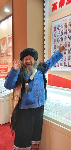四川省甘孜縣郵政分公司長途郵運(yùn)駕駛員其美多吉觀看展覽后,表示展覽很震撼:“通過郵票看到改革開放40年以來祖國的變化,也看到了郵政的變化,非常激動!”他專注地觀賞了“民族大團(tuán)結(jié)”郵票中藏族的那一枚。彝族同胞、南澗跳菜傳承人阿本枝也對“民族大團(tuán)結(jié)”郵票情有獨(dú)鐘:“第一排右邊數(shù)第二個就是彝族,我不屬于那個分支,但那個‘茲提’是很準(zhǔn)確的,這套郵票很棒!”身著彝族服裝、蓄著大胡子的阿本枝在現(xiàn)場為郵票豎起了大拇指。