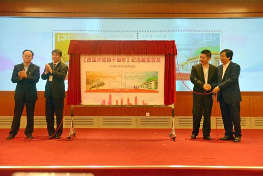 12月18日,《改革開放四十周年》紀念郵票全國首發(fā)式暨“不忘初心 筑夢前行”慶祝改革開放40周年全國集郵文化巡回活動閉幕式在滁州市人民廣場成功舉辦。中國郵政集團公司副總經(jīng)理張榮林,原安徽省政協(xié)副主席、安徽省集郵協(xié)會名譽會長李宏塔等領導及郵票設計師李志宏出席活動。張榮林、李宏塔共同為郵票揭幕。
