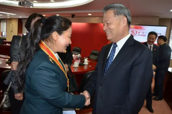 交通運輸部黨組書記楊傳堂與尼瑪拉木親切握手