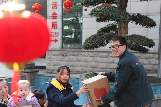 1月23日不到7點,湖北省黃石市郵政速遞物流分公司團城山攬投部的攬投員李敏就已經(jīng)出班投遞前一日因客戶原因未妥投的郵件。據(jù)了解,團城山攬投部一共有6名攬投員,春節(jié)旺季人均日投遞量近300件,已經(jīng)趕上去年“雙11”的峰值。為了讓客戶及時收到郵件,攬投員們提前出班,晚上還要進行小夜班投遞,在繁忙的郵路上迎接春節(jié)的到來。圖為李敏在張燈結(jié)彩的小區(qū)里投遞郵件。 □汪林莉 攝影報道