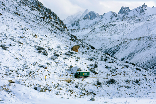 雪線郵路上那抹流動(dòng)的郵政綠,在人們的心目中,就是黑夜里的光,就是困頓中的希望。 周兵/攝