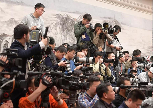 為了能夠拍攝到好照片、采訪到委員,各媒體的小哥哥小姐姐們可謂絞盡腦汁,有的記者帶了簡(jiǎn)直比高蹺還要高3厘米的梯子,有的記者笑臉如花,先把問(wèn)題拋出去,話筒遞上去,根本不給政協(xié)委員拒絕的機(jī)會(huì)。有的政協(xié)委員剛接受完采訪,第二波記者又來(lái)了,一波接著一波。