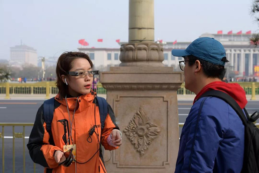 戴上直播眼鏡的長(zhǎng)城新媒體耿佳成為“網(wǎng)紅”記者