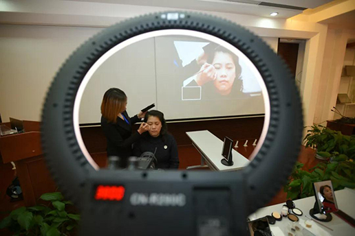 在西城區(qū)分公司舉辦的“畫出上會(huì)服務(wù)的最美風(fēng)景”妝容培訓(xùn)課上,20余名兩會(huì)上會(huì)服務(wù)的女員工正在聚精會(huì)神地練習(xí)著職業(yè)妝化妝手法,來自國(guó)際化妝大賽的評(píng)委老師簡(jiǎn)練而專業(yè)地為女員工們講解著化妝技巧。課程結(jié)束后,員工們均表示受益匪淺,通過學(xué)習(xí)提高了自己的化妝水平,可以把自己最佳的狀態(tài)呈現(xiàn)在用戶面前,以示禮貌和尊重。