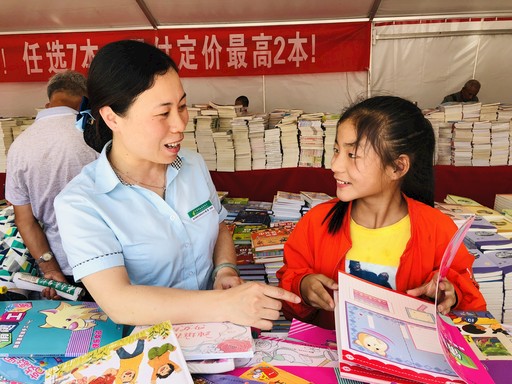 4月19日,在世界讀書日即將來臨之際,云南省紅河哈尼族彝族自治州建水縣郵政分公司聯(lián)合縣文明辦等單位舉辦的“全民閱讀 書香建水”大型圖書活動啟動?;顒訚庥舻臅惴諊艿绞忻竦臍g迎,為建水縣精神文明建設(shè)貢獻一份力。圖為建水縣朝陽北路營業(yè)所營業(yè)員為兒童講解圖書內(nèi)容。□趙祝甜 攝影報道