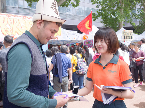 5月19日,在北京語(yǔ)言大學(xué)校園內(nèi)的梧桐大道上,來(lái)自90多個(gè)國(guó)家和地區(qū)的近千名北語(yǔ)青年學(xué)子,與社會(huì)各界人士歡聚第十六屆北京語(yǔ)言大學(xué)世界文化節(jié)。北京市海淀區(qū)郵政寄遞事業(yè)部組織工作人員走進(jìn)北語(yǔ)世界文化節(jié),宣傳EMS國(guó)際業(yè)務(wù),展示了EMS的品牌形象?! 醣本┯浾?nbsp; 吳玉蘭 通訊員 隋源 攝影報(bào)道