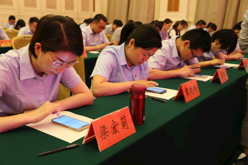 近日,郵儲銀行安徽省分行黨委舉辦了黨務(wù)干部培訓(xùn)班。在培訓(xùn)現(xiàn)場,100余名學(xué)員都在格外認(rèn)真地低頭擺弄手機(jī)。湊近一看,原來是學(xué)員們正通過“中郵先鋒”APP進(jìn)行黨建應(yīng)知應(yīng)會知識線上考試。