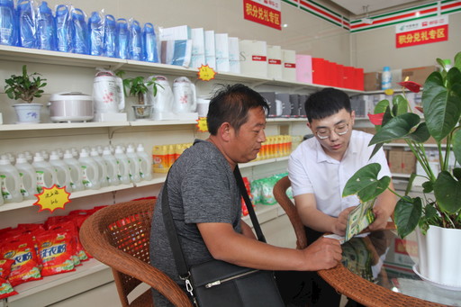 “郵政存款安全又方便,東古城郵政歡迎您。”說(shuō)這句話(huà)的是郵政便民服務(wù)站站長(zhǎng)孫之江。孫之江在村里開(kāi)了一家小商店,平時(shí)都是自己開(kāi)車(chē)到城里進(jìn)貨。在成為站長(zhǎng)后,他進(jìn)貨的煩惱解決了,還在商店開(kāi)辦了很多新的業(yè)務(wù),店里的人氣也越來(lái)越高。孫之江很感激郵政,所以每一位來(lái)他店里的客戶(hù)都會(huì)聽(tīng)到這樣一句宣傳語(yǔ)。