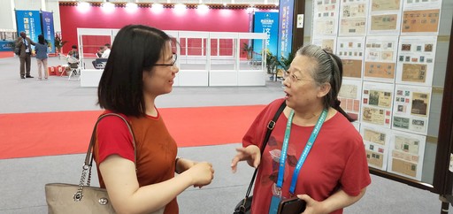 此次世界郵展評審委員會主任焦曉光(右)在展會現(xiàn)場接受《中國郵政報》特派記者王楚蕓采訪。