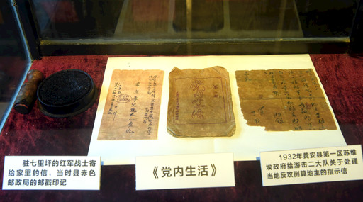 紅安縣赤色郵政局里,展示著象征紅四方面軍、紅二十五軍、紅二十八軍“三軍合一”的紅旗以及《小平您好》《中國(guó)夢(mèng)》《中國(guó)工農(nóng)紅軍長(zhǎng)征勝利八十周年》等紅色郵品;懸掛著《董必武同志誕生一百周年》《徐向前同志誕生九十周年》《中國(guó)人民解放軍大將王樹聲》等紀(jì)念郵票;陳列著黨在土地革命時(shí)期的指示信、紅軍家書和赤色郵政工作服、郵包、郵戳、草鞋、蓑衣、斗笠等用品用具,已有數(shù)千人到此接受愛(ài)國(guó)主義教育。