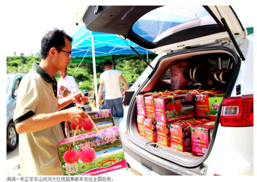 “助力精準扶貧,打造郵政品牌,是我們履行央企責任擔當?shù)捏w現(xiàn),希望借此次血桃熱銷的機會,為郵政電商扶貧進行更多的嘗試,這也是我們服務‘三農(nóng)’的新突破。”孝昌分公司總經(jīng)理李晶對前來采訪的當?shù)孛襟w介紹道。