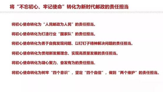 將“不忘初心、牢記使命”轉(zhuǎn)化為新時(shí)代郵政的責(zé)任擔(dān)當(dāng)