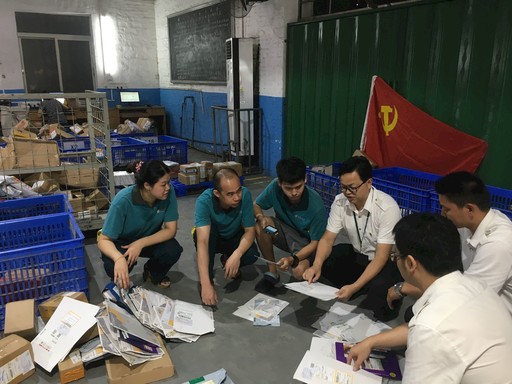 2018年7月1日,帶著這一課題,職能部室黨員劉松釗、曾俊軍以掛靠方式派駐到石牌投遞部黨小組。平日里,他們與攬投員一起上門攬件、打包、裝車,在充分掌握基層網(wǎng)點(diǎn)生產(chǎn)情況的基礎(chǔ)上,提出對(duì)大客戶寄遞的輕小件采取直封和集包的建議。