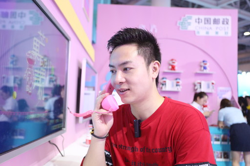 粉藍(lán)相間的主體配色、浪漫的彩色燈飾少女心十足,4臺(tái)聲音明信片錄制設(shè)備科技感滿滿......中國郵政的展區(qū)就在主舞臺(tái)的旁邊?!?0后”女孩沈佳珎剛剛在這里制作完一張聲音明信片,便急不可待地向朋友們展示她的“成果”?!皼]想到明信片也有這么新穎的傳遞方式?!彼龗呙杳餍牌系亩S碼,嘗試著回放自己剛剛錄制的聲音。聲音明信片錄制設(shè)備,可以將心里話錄制下來,生成二維碼,即時(shí)打印在明信片上。為了體驗(yàn)制作聲音明信片,大家排起了長隊(duì),成為展場的一道風(fēng)景線。