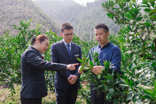 揚眉鎮(zhèn)支行信貸客戶經(jīng)理走訪臍橙客戶了解金融需求。