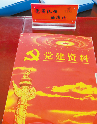 肇源縣分公司黨委堅持黨建引領(lǐng),實(shí)行組織設(shè)置科學(xué)化、工作運(yùn)行高效化、組織生活規(guī)范化、黨員隊伍標(biāo)準(zhǔn)化、基礎(chǔ)保障堅實(shí)化、品牌建設(shè)特色化“六位一體”的管理方式,加強(qiáng)黨員隊伍建設(shè)。圖為專門設(shè)計的黨建資料活頁夾。寧國富 攝