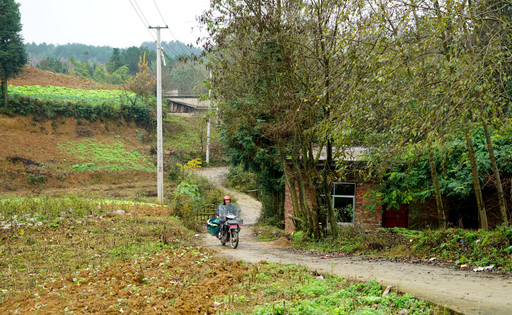 鄉(xiāng)郵員行駛在田野鄉(xiāng)間。記者 韓靜樺 攝