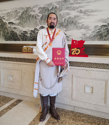 四川省甘孜藏族自治州甘孜縣郵政分公司長(zhǎng)途郵運(yùn)駕駛員其美多吉榮獲全國(guó)民族團(tuán)結(jié)進(jìn)步模范個(gè)人稱號(hào),習(xí)近平總書記親自為其美多吉頒發(fā)獎(jiǎng)?wù)潞妥C書。
