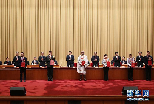 大會(huì)表彰了全國(guó)民族團(tuán)結(jié)進(jìn)步模范集體和模范個(gè)人,665個(gè)模范集體、812個(gè)模范個(gè)人受到表彰。在歡快的樂(lè)曲聲中,習(xí)近平等為受表彰的模范集體和模范個(gè)人代表頒獎(jiǎng)。