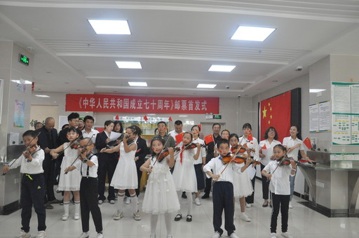 10月1日,新疆維吾爾自治區(qū)16個(gè)市級郵政分公司同步舉行了《中華人民共和國成立七十周年》紀(jì)念郵票首發(fā)活動(dòng)。哈密市分公司的首發(fā)活動(dòng)在小朋友美妙的小提琴演奏聲中拉開帷幕,伴著悠揚(yáng)的琴聲,集郵愛好者和郵政員工一同歌唱《我和我的祖國》,氣氛莊重而熱烈。此次活動(dòng)吸引了大批學(xué)生、老師、集郵愛好者和廣大群眾前來參加。該分公司講解員為小朋友現(xiàn)場講解集郵小知識,培養(yǎng)孩子們的集郵興趣。小朋友們熱情高漲,紛紛到集郵柜臺(tái)參觀。(楊芹 攝影報(bào)道)