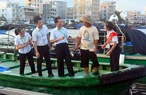 蔡德余和他的團(tuán)隊(duì)成員向漁民了解貸款需求。