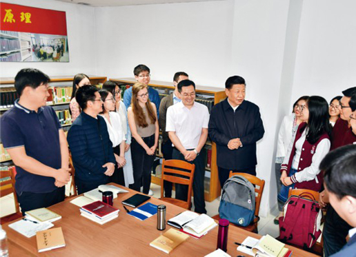 2018年5月2日,中共中央總書記、國(guó)家主席、中央軍委主席習(xí)近平來到北京大學(xué)考察。這是習(xí)近平在北京大學(xué)馬克思主義學(xué)院,與正在就“解讀新時(shí)代”進(jìn)行座談交流的中外學(xué)生親切交談。 新華社記者 李濤/攝