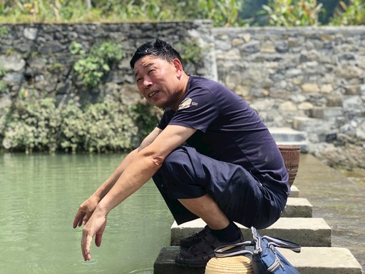 走訪期間因天氣炎熱,陳澤維就在溝渠中掬水洗臉。