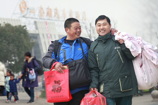 在車站、城鄉(xiāng)郵政網(wǎng)點(diǎn)等活動(dòng)現(xiàn)場(chǎng),金湖縣分公司志愿者在為返鄉(xiāng)務(wù)工人員提供便民服務(wù)的同時(shí),向其贈(zèng)送內(nèi)含春聯(lián)、窗花、“?!弊值挠憾Y包,并發(fā)放《法律法規(guī)知識(shí)手冊(cè)》《勞動(dòng)合同知識(shí)普及手冊(cè)》等相關(guān)政策法規(guī)資料以及《郵政便民服務(wù)手冊(cè)》《預(yù)防電信詐騙手冊(cè)》等便民資料。圖為金湖縣分公司投遞員王波接呂良鎮(zhèn)返鄉(xiāng)務(wù)工人員凌久權(quán)回家?!跫獱栐?nbsp; 攝影報(bào)道