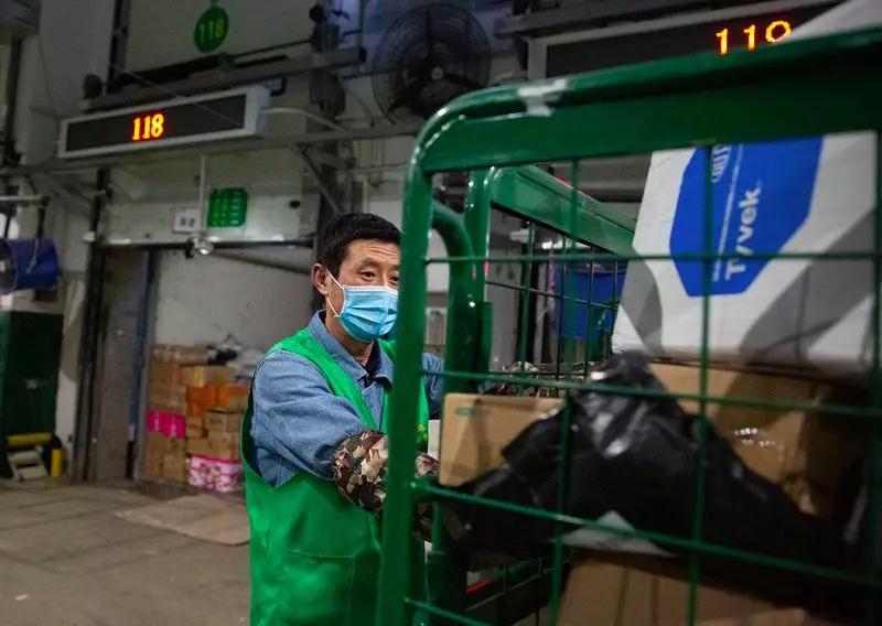 2月1日下午,武漢郵區(qū)中心局郵件處理中心,一名工作人員將一批捐贈燈具裝上郵車,準備第二天發(fā)往火神山醫(yī)院。當天,火神山醫(yī)院施工人員正不眠不休地趕工,確保在2月3日交付使用。