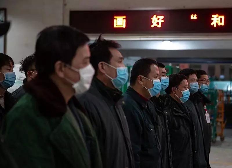 2月1日,武漢郵區(qū)中心局,上夜班的工作人員集合。這里目前24小時運轉(zhuǎn),夜間也要處理數(shù)千件郵件。