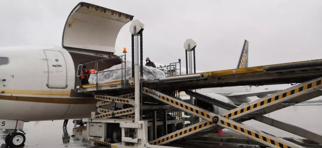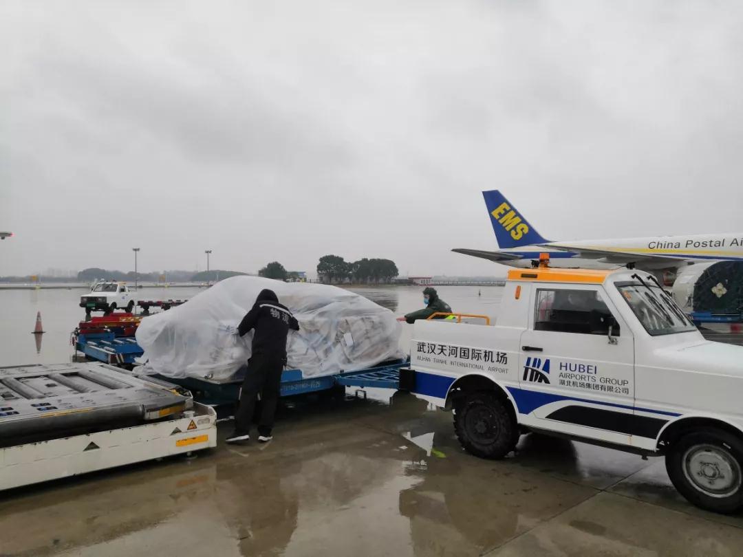 隨著飛機(jī)先后抵達(dá),武漢天河機(jī)場(chǎng)接卸作業(yè)迅速展開(kāi)。由于下著小雨,郵航武漢辦事處人員在物資的機(jī)坪盤(pán)運(yùn)中,緊急加蓋塑料布,防止物資被雨淋濕。通過(guò)緊張的作業(yè),郵航武漢辦事處均在半小時(shí)內(nèi)先后將兩架專機(jī)運(yùn)抵物資移交陸側(cè)作業(yè),現(xiàn)該批物資正由武漢郵政迅速運(yùn)往接收方。