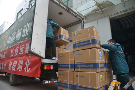 為確保防疫物資及時運送,河南省、新鄉(xiāng)市、長垣市三級郵政企業(yè)緊急響應、全力支撐,組織人員和車輛,協(xié)調(diào)中間環(huán)節(jié),為開通專線做足準備。當天16點,我和連玉強戴上口罩,準備好政府和單位共同出具的通行證明以及隔離服、口罩、鞋套、護目鏡等裝備,滿載著由愛心企業(yè)捐贈的2萬個醫(yī)用外科口罩、5萬雙橡膠外科手套,共計138箱防疫物資,緊急駛往武漢大學中南醫(yī)院。