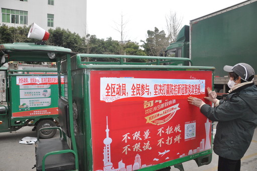 2月6日,四川省資陽市郵政寄遞事業(yè)部雁江區(qū)營業(yè)部大力配合區(qū)政府防疫宣傳,為投遞三輪車安裝疫情防控宣傳小喇叭30個、宣傳標(biāo)語60幅,并通過投遞人員發(fā)放疫情防控宣傳DM1萬份?! 趿_軍 攝影報道