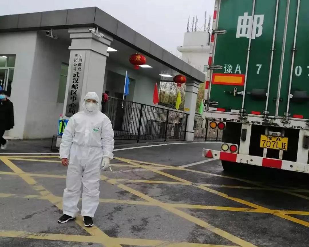 16點51分,已經穿戴好口罩、防護服、護目鏡、長膠手套,做好防疫準備的張昌立、王照然順利抵達武漢郵區(qū)中心局,也預示著這批醫(yī)療物資將很快送達目的地。郵件交接很快完成,稍作休整后,17點30分他們開始驅車返回鄭州。
