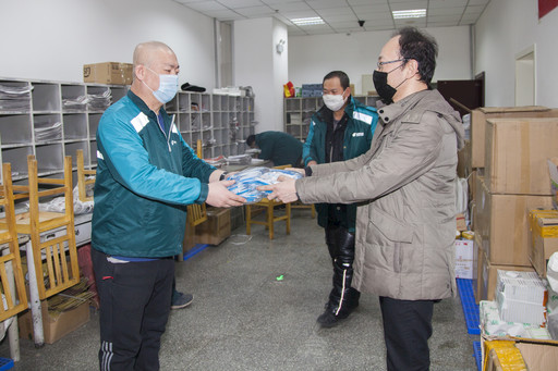 2月19日,馬敏杰得知一線員工防護(hù)用品緊缺的情況后,四處聯(lián)系,最終購進(jìn)100個(gè)口罩,贈(zèng)送給投遞員?!耙欢ㄒ龊梅雷o(hù)措施?!痹谕哆f班,馬敏杰只留下一句話便轉(zhuǎn)身離開了。