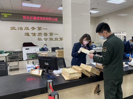 在采訪中,記者看到了北京機(jī)要局最近收到的兩封感謝信,分別來自武漢某部隊(duì)和北京市人民檢察院某分院。武漢某部隊(duì)感謝北京機(jī)要局對(duì)疫情防控文件的應(yīng)急處理工作。接到從北京寄往武漢某部隊(duì)涉及疫情的機(jī)要文件后,北京機(jī)要局第一時(shí)間與湖北省機(jī)要局溝通協(xié)調(diào),打破了僅工作日投遞機(jī)要件的常規(guī)處理模式,3小時(shí)內(nèi)將文件妥投到位?!爱?dāng)疫情迅速蔓延之時(shí),你們克服各種困難,把我們所需的機(jī)要文件及時(shí)投遞,為我們研究擬制疫情處置方案發(fā)揮了作用,特向你們表示衷心感謝?!蔽錆h某部隊(duì)在感謝信中寫道。