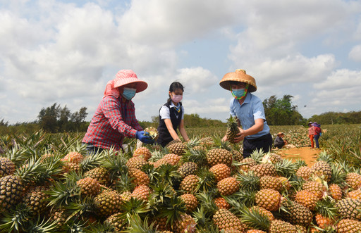 圖為文昌市支行信貸員深入菠蘿種植基地開(kāi)展金融服務(wù),與農(nóng)戶共迎豐收。 □海南記者 梁磊 攝影報(bào)道