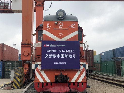 3月27日,首趟“中國(guó)郵政號(hào)”中歐班列(義烏—馬德里)從義烏西站駛出。此次班列集結(jié)了浙江全省郵件共計(jì)20多萬(wàn)件,預(yù)計(jì)于13天后抵達(dá)波蘭,隨即中轉(zhuǎn)至西班牙、英國(guó)、法國(guó)、德國(guó)等歐洲國(guó)家。