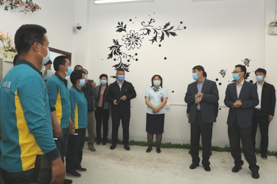 李丕征、郭成林一行詳細(xì)了解郵政基層網(wǎng)點(diǎn)疫情防控工作情況,指出當(dāng)前我國(guó)疫情防控形勢(shì)持續(xù)向好,但境外疫情還在加劇蔓延,輸入風(fēng)險(xiǎn)大幅增加,人員流動(dòng)和聚集帶來的疫情反彈風(fēng)險(xiǎn)依然存在,必須清醒看到疫情形勢(shì)的復(fù)雜性和嚴(yán)峻性,始終繃緊疫情防控這根弦,更加精準(zhǔn)、更加扎實(shí)落實(shí)各項(xiàng)防控措施。要按照集團(tuán)公司黨組的決策部署,在抓緊抓實(shí)抓細(xì)常態(tài)化疫情防控和推進(jìn)復(fù)工復(fù)產(chǎn)中走在前列、當(dāng)好先鋒,確保郵政通信服務(wù)安全暢通,為經(jīng)濟(jì)社會(huì)秩序全面恢復(fù)提供有力保障。