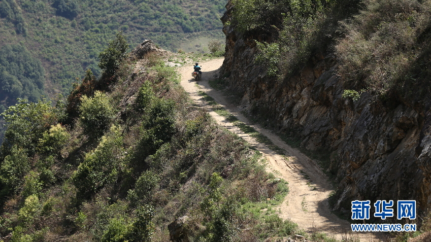 桑南才騎行在高山峽谷間(5月10)。新華網(wǎng) 趙普凡 攝