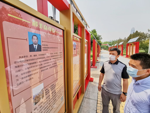 山東省濟(jì)南市泉城廣場建起的“最美奮斗者”系列展示長廊日前亮相,據(jù)了解,該展示活動由濟(jì)南市精神文明辦、濟(jì)南泉城廣場管理處聯(lián)合主辦。長廊共展示新中國成立以來全國各個時期各行各業(yè)的優(yōu)秀工作者(集體)300個,其中,個人278名、集體22個,中國郵政員工其美多吉、王順友在列。圖為市民觀看了解其美多吉事跡介紹。